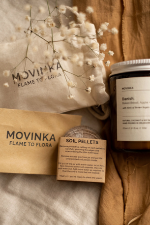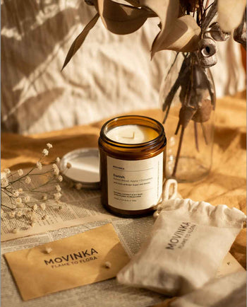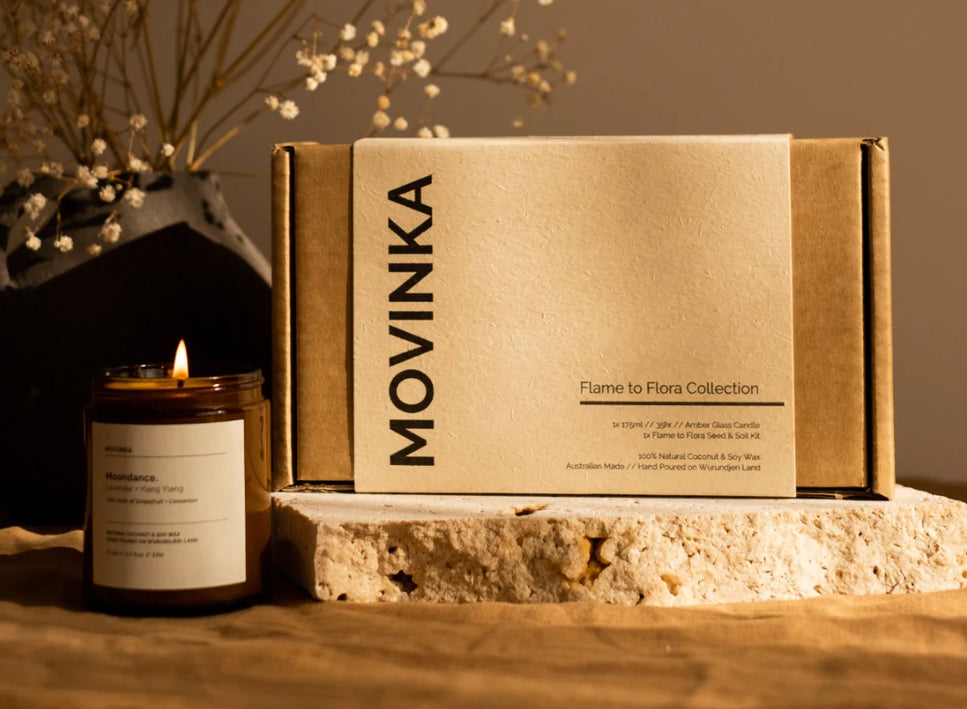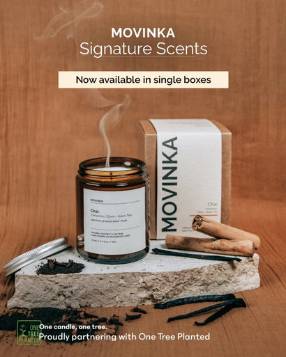 MOVINKA candles are made from 100% natural and renewable coconut & soy wax, the sustainable alternative to palm or parrafin wax.